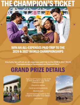 Experience the excitement of the Breeders’ Cup in style! Enter for a chance to win a 4-night trip to Lexington, Kentucky, including flights, hotel accommodations, and spending cash - valued at $22,800. Don’t miss this once-in-a-lifetime getaway.